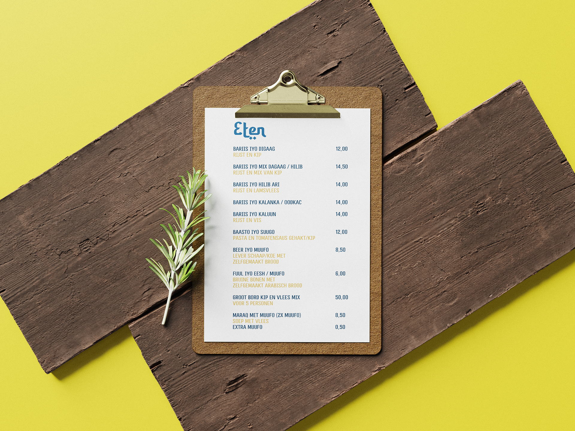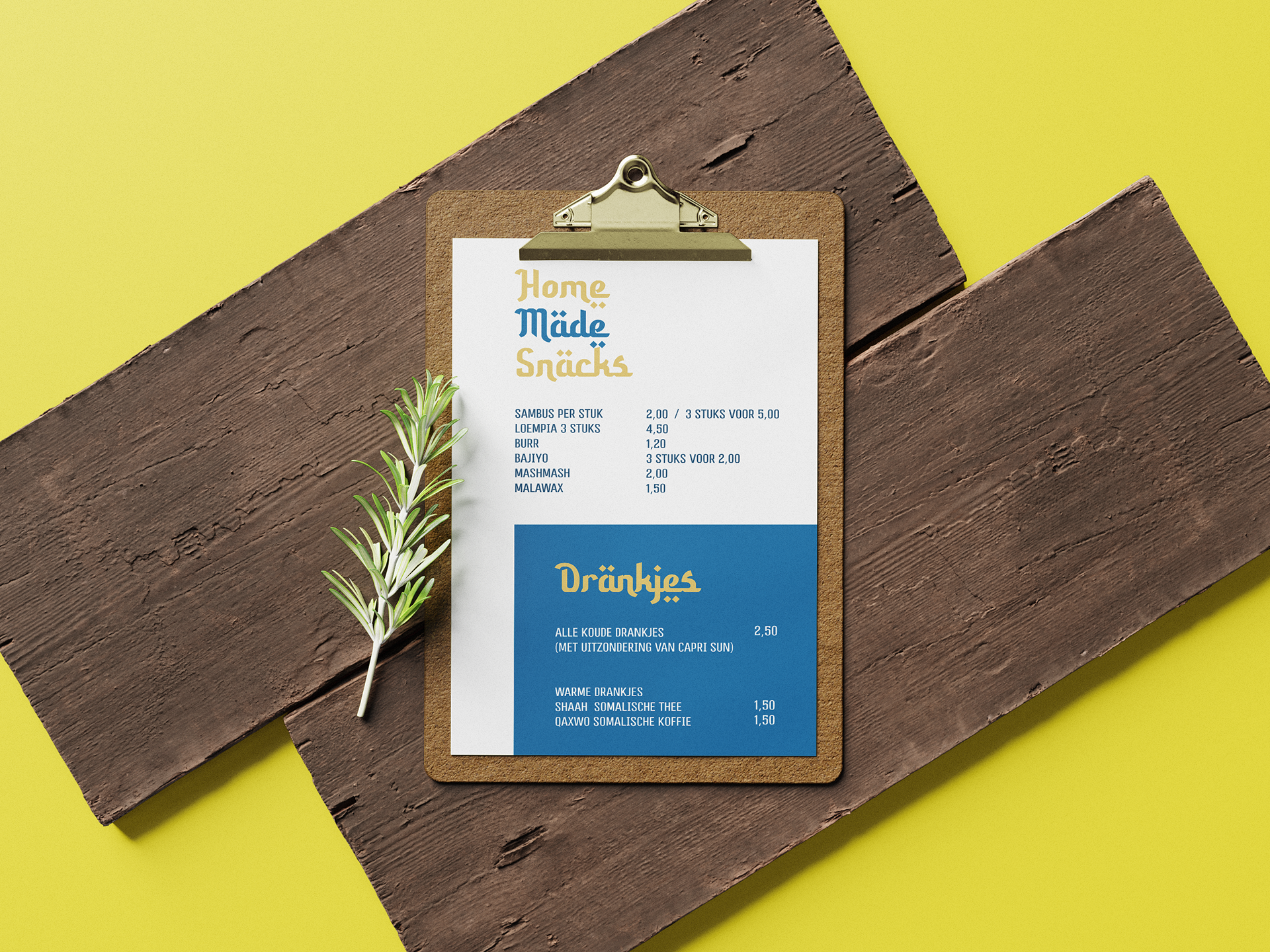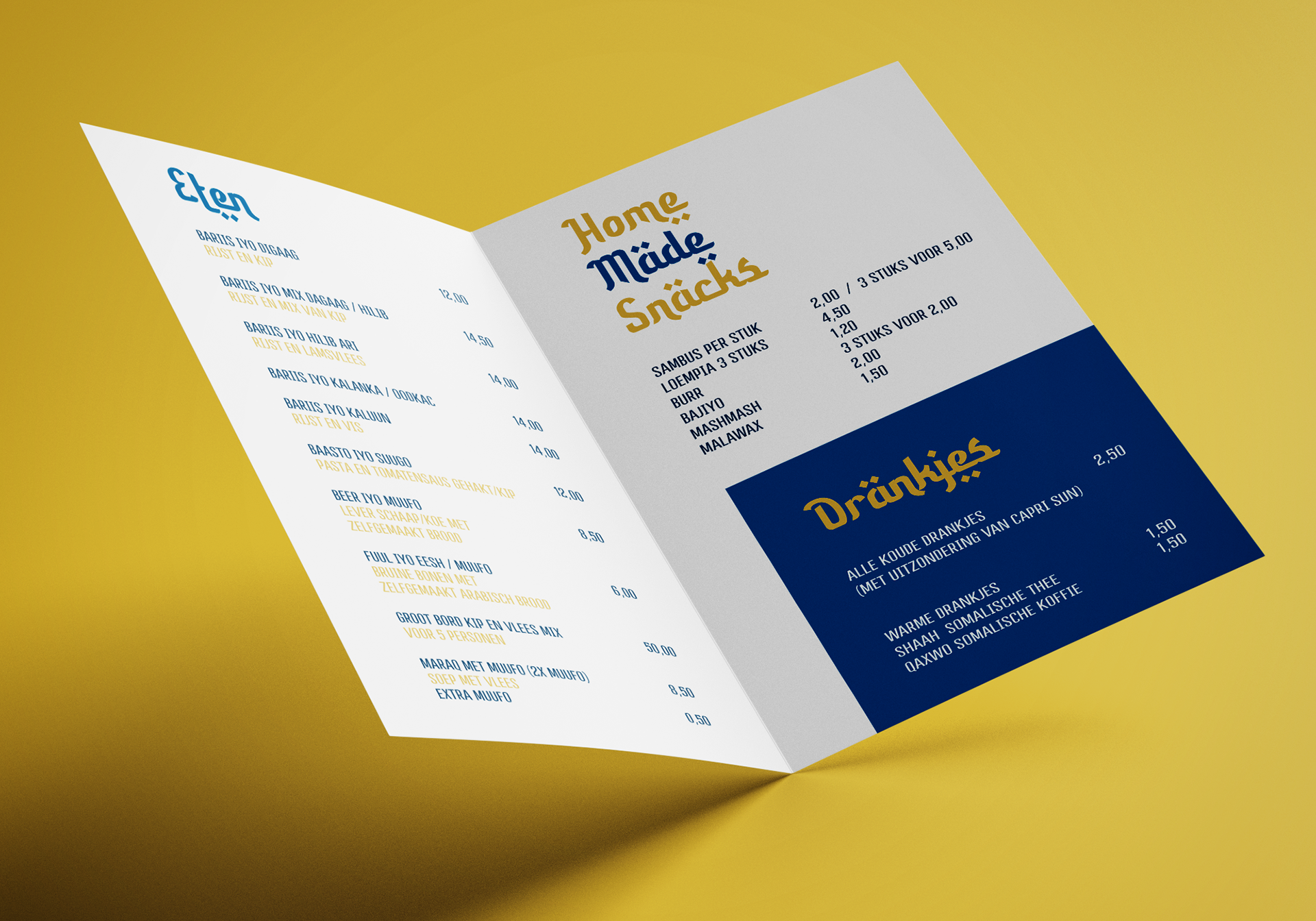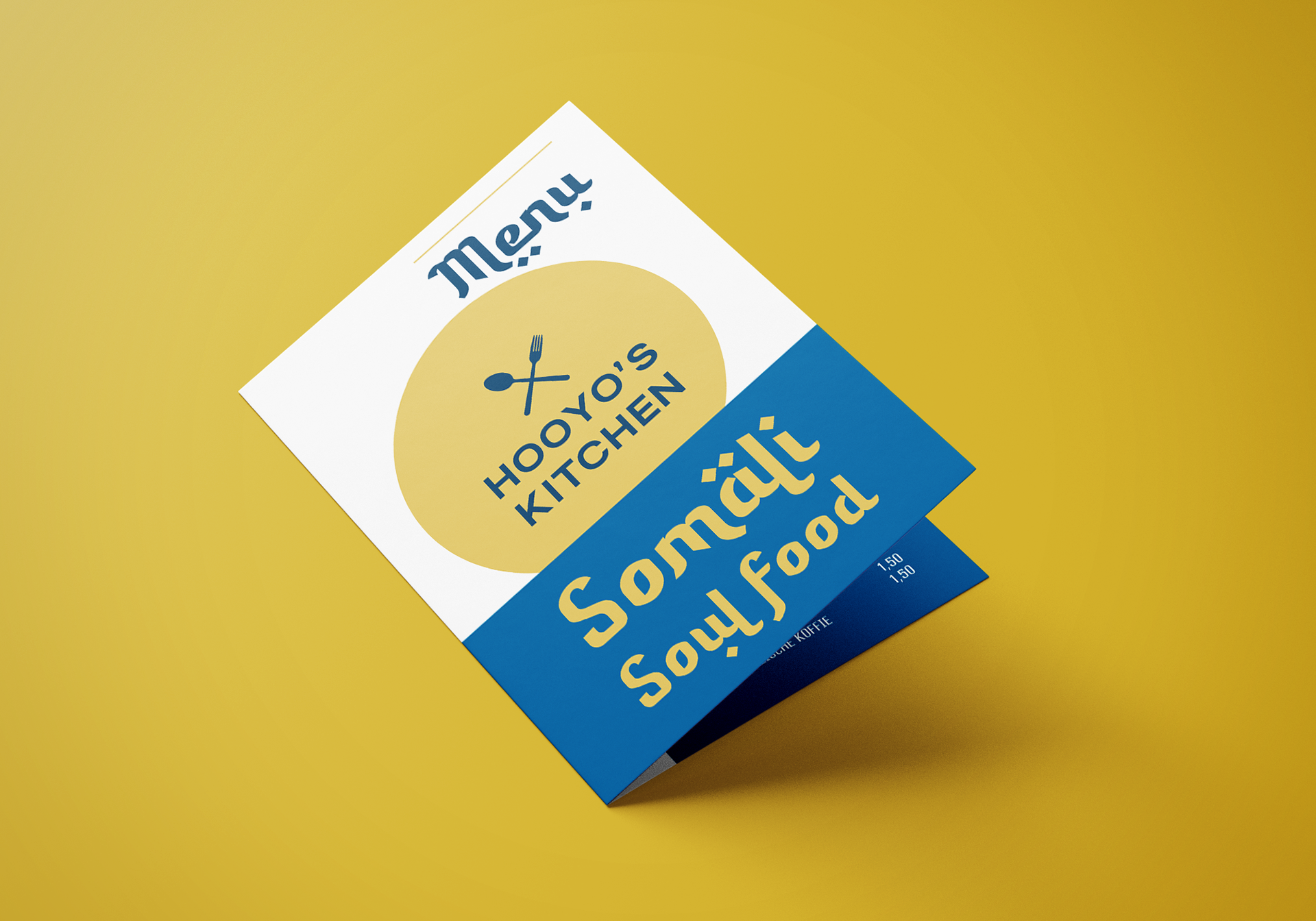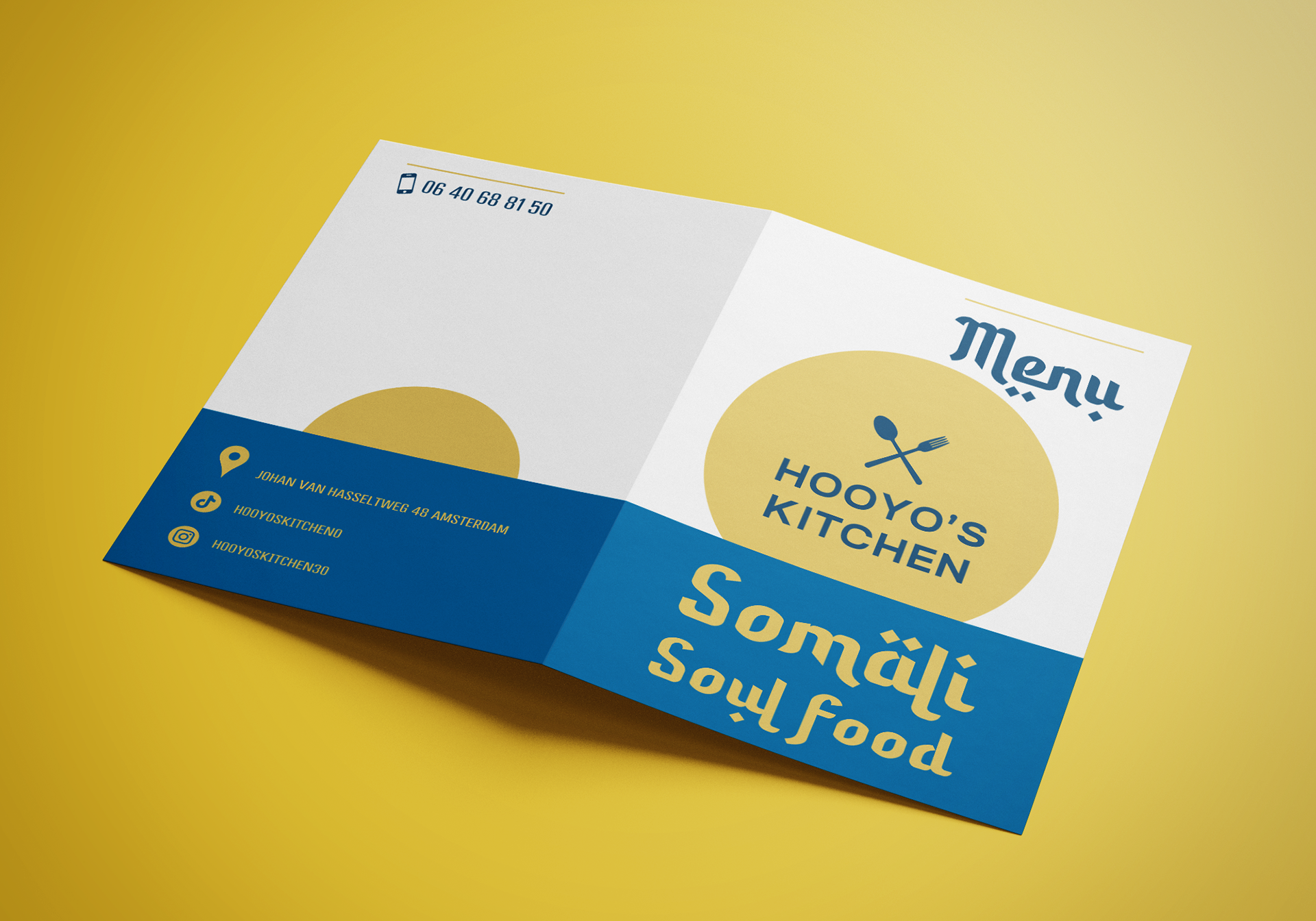 A5 foldable Menu and A4 menu made for Hooyo's Kitchen a new Somali take out restaurant in Amsterdam-Noord